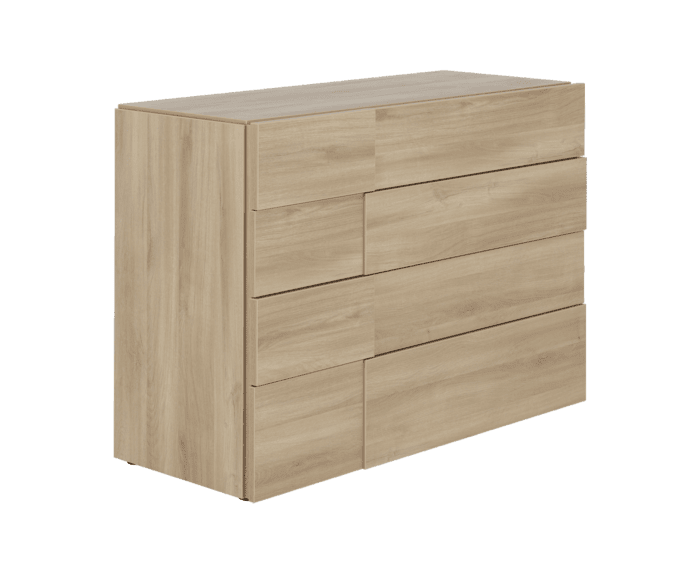 Frame and fronts made from particleboard covered with Country oak effect foil. Edges: 2mm ABS thick or flat, Country oak effect foil. Drawer frames in fibreboard covered with Country oak effect foil. Height-adjustable hidden roller runners and soft-close mechanism on bedside units, tall chest and dresser. All furniture is self-assembly except where marked * (fully assembled with possible exception of handles, floor protectors and castors).