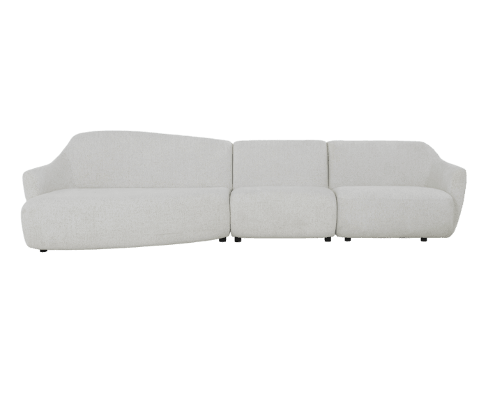 The Oasis asymmetrical 3-seater sofa is a real favorite with its organic design and ultra-trendy bouclé finish. Elegant and comfortable, it is the ideal cocoon to relax in at the end of the day. Modular, add elements such as a chaise longue to create a warm and welcoming living room. Embellish it with an optional pouf for more comfort and practicality. The Oasis sofa creates a cocooning atmosphere perfect for moments of relaxation and shared complicity.