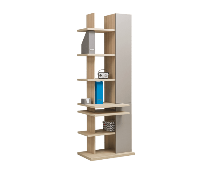 This GRAPHIC bookcase combines several features. It has numerous storage spaces, both open and enclosed, creating a perfect mix for teens who love to proudly display their favourite items and books but also like to have a secret hideaway for their private souvenirs and objects.